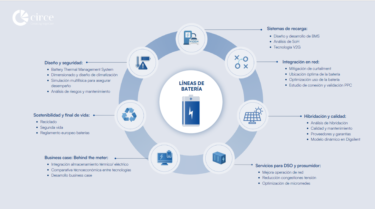 En un contexto marcado por la presión regulatoria, la necesidad de competitividad y la urgencia de avanzar hacia una economía circular, CIRCE se posiciona como socio tecnológico de referencia. Nuestras capacidades abarcan desde la investigación aplicada hasta la implementación industrial, acompañando a las empresas en todas las fases del ciclo de vida de la batería.