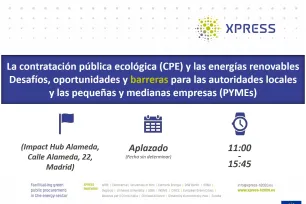 La Contratación Pública Ecológica, a través de la cual las Administraciones Públicas incorporan criterios económicos y medioambientales sostenibles a sus compras, es un eficaz apoyo público para las pymes ambientalmente innovadoras. A través de ella, se puede conseguir reducir los riesgos de inversión para, más tarde, crear nichos para el surgimiento de tecnologías ambientales y facilitar la adopción y difusión de las mismas. Consciente de esta problemática, el proyecto europeo XPRESS busca facilitar la introducción de tecnologías innovadores en energías renovables y aumentar la participación de las mismas en el consumo final a través de la colaboración público-privada. Concretamente, XPRESS, compuesto por 16 socios europeos y financiado por 3 millones de euros por la Comisión Europea a través del programa H2020, identificará las necesidades energéticas bajas en carbono en municipios de Reino Unido, Italia, Noruega, Alemania, Suecia, España, Dinamarca, Eslovaquia, Portugal y Bélgica con perspectiva de extender las soluciones a otros países y mejorará la aplicación de la Contratación Pública Económica hacia tecnologías que sirvan para aumentar competitividad de las pymes innovadoras y así impulsar las energías renovables. Además, creará una plataforma web que permitirá la interactuación entre compradores públicos, pymes innovadoras y usuarios finales. Esta plataforma será desarrollada y estará coordinada por el centro tecnológico español CIRCE, que también contribuirá en la elaboración de ejemplos de buenas prácticas y en la organización de talleres en diferentes ciudades españolas. Los resultados obtenidos dentro del proyecto XPRESS se presentarán a través de un conjunto de talleres de creación de políticas que reunirán a representantes interesados de ciudades y empresas de toda Europa con el fin de crear recomendaciones orientadas a políticas ambientales centradas en las áreas temáticas mencionadas en la Agenda Urbana de la Unión Europea así como en los Objetivos de Desarrollo Sostenible de las Naciones Unidas. Todo ello se llevará a cabo por un consorcio europeo en la mejor posición para promover activamente un diálogo constructivo entre el sector público y el privado y promover inversiones innovadoras en el campo de las energías renovables. El valor del consorcio reside en su amplia experiencia en este campo y en su interdisciplinaridad, ya que está compuesto por expertos de diversas áreas.